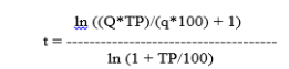 (( 1 + ТР/100)t – 1) * q Q = -------------------------------- TP/100 Q – запас ресурсов; q – годовая добыча ресурса; ТР – прирост потребления ресурса; t – число лет.