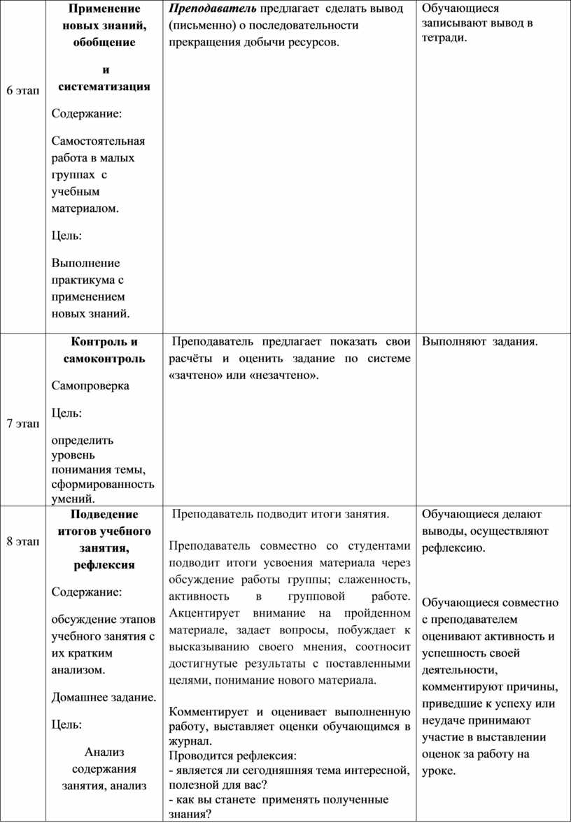 Преподаватель предлагает сделать вывод (письменно) о последовательности прекращения добычи ресурсов.