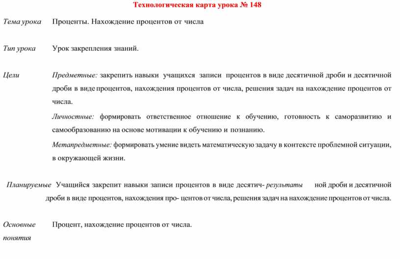 Технологическая карта урока № 148