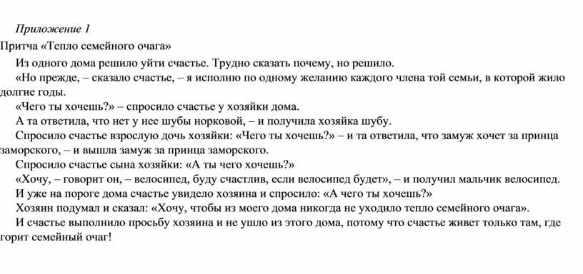 «Но прежде, – сказало счастье, – я исполню по одному желанию каждого члена той семьи, в которой жило долгие годы.