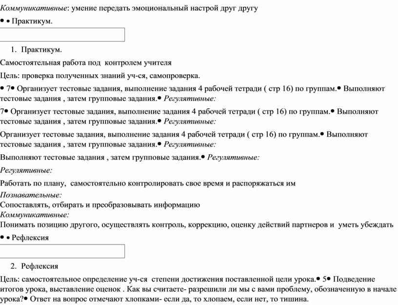 Регулятивные: Работать по плану, самостоятельно контролировать свое время и распоряжаться им Познавательные: Сопоставлять, отбирать и преобразовывать информацию Коммуникативные: Понимать позицию другого, осуществлять контроль, коррекцию, оценку действий партнеров и уметь убеждать