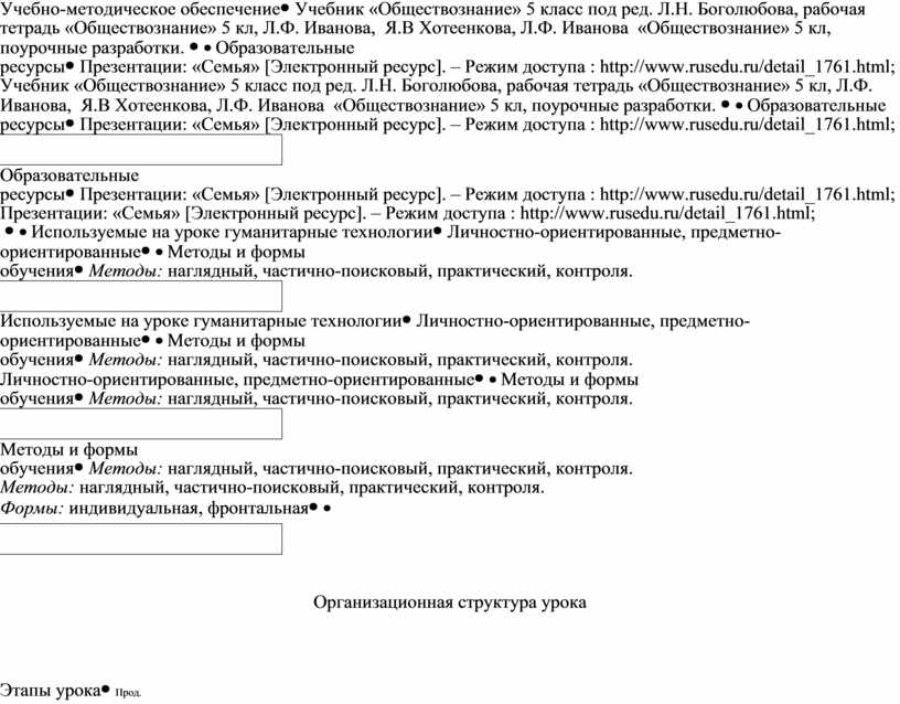 Учебник «Обществознание» 5 класс под ред. Л.Н. Боголюбова, рабочая тетрадь «Обществознание» 5 кл, Л.Ф. Иванова, Я.В Хотеенкова, Л.Ф. Иванова «Обществознание» 5 кл, поурочные разработки. |