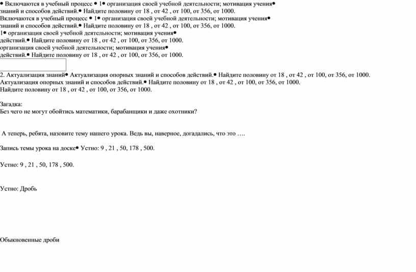 Найдите половину от 18 , от 42 , от 100, от 356, от 1000.