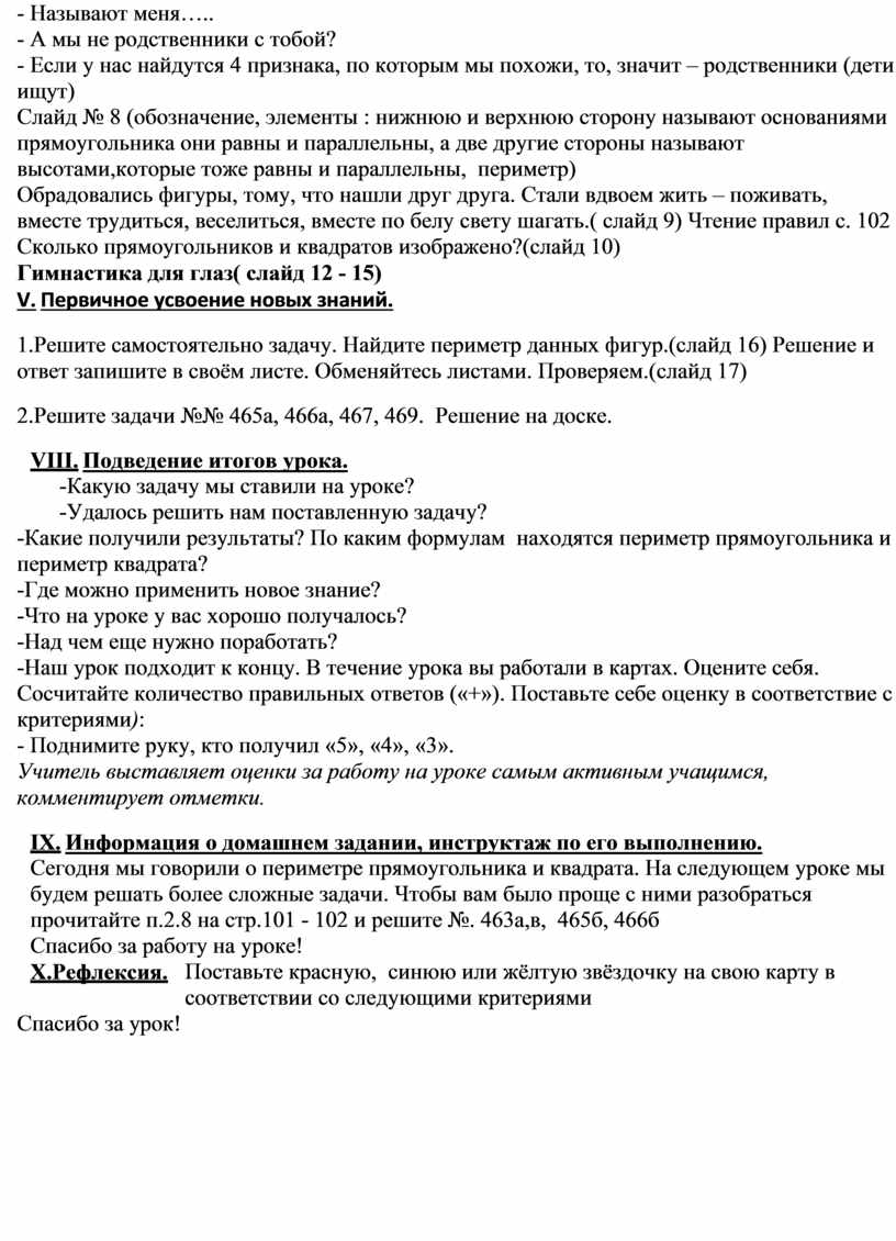 Сегодня мы говорили о периметре прямоугольника и квадрата. На следующем уроке мы будем решать более сложные задачи. Чтобы вам было проще с ними разобраться прочитайте п.2.8 на стр.101 - 102 и решите №. 463а,в, 465б, 466б