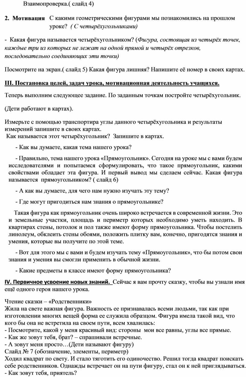 - дать представление о свойствах противолежащих сторон прямоугольника