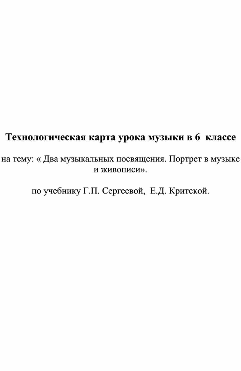Технологическая карта урока музыки в 6 классе