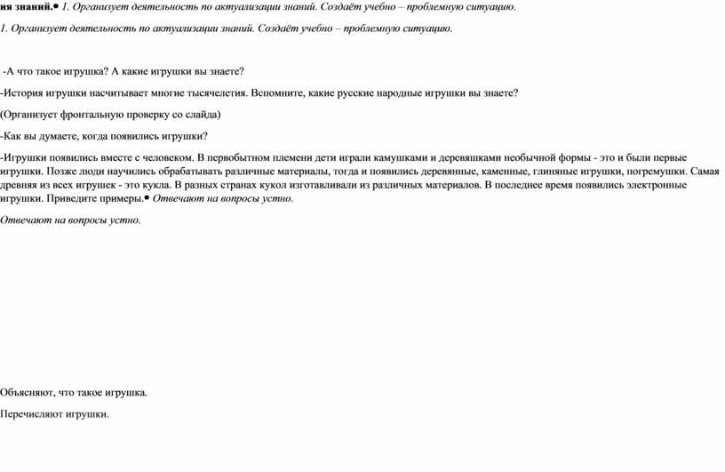 1. Организует деятельность по актуализации знаний. Создаёт учебно – проблемную ситуацию.