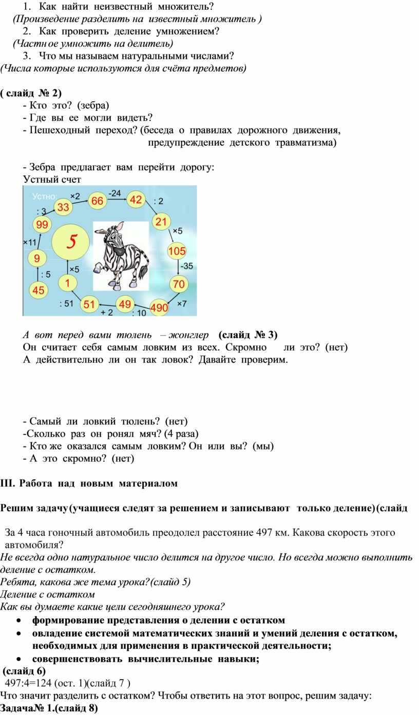 - Формирование умений деления с остатком, тренировать способность его применения в практической деятельности;
