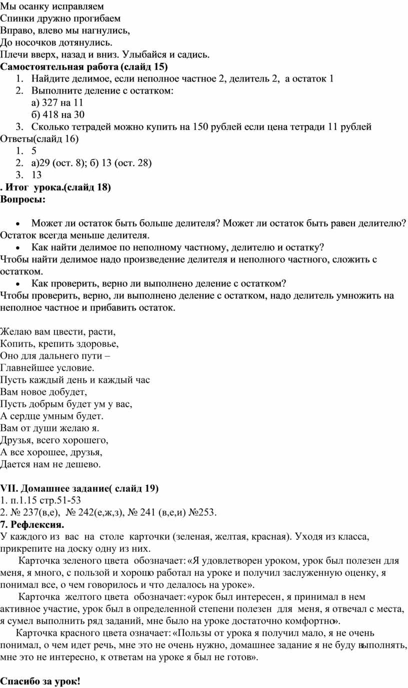Учитель: Когда выполняется деление с остатком, что мы должны помнить?