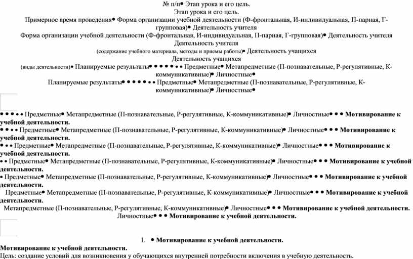 ТЕХНОЛОГИЧЕСКАЯ КАРТА УРОКА