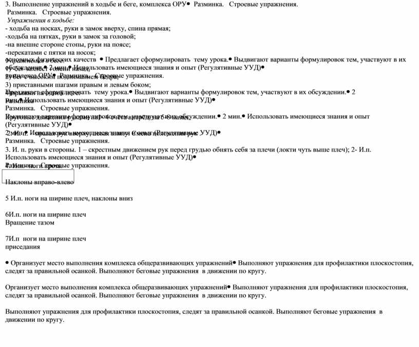 3. Выполнение упражнений в ходьбе и беге, комплекса ОРУ |