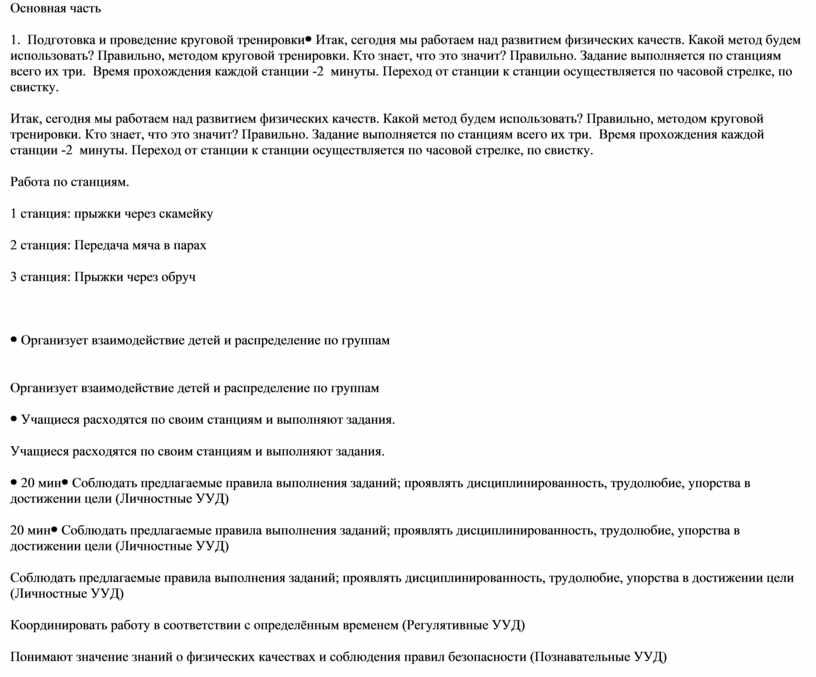 Основная часть 1. Подготовка и проведение круговой тренировки |