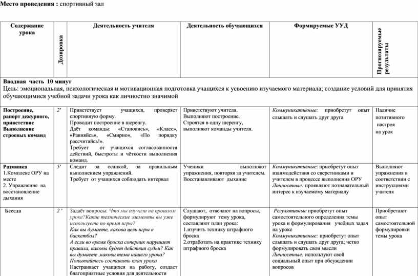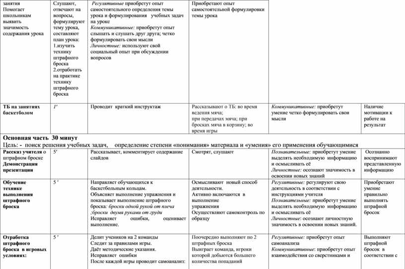 -организовать деятельность учащихся по изучению техники выполнения штрафного броска;