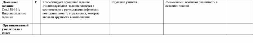 Комментирует домашнее задание .Индивидуальное задание задаётся в соответствие с результатами рефлексии: повторить дома те упражнения, которые вызвали трудности в выполнении |