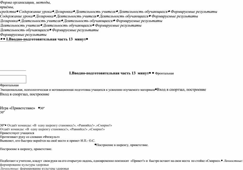I.Вводно-подготовительная часть 13 минут |