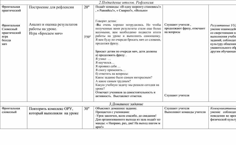 Технологическая карта урока физической культуры во 2 классе