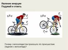 Отвечают на вопросы Вернемся к рисункам показанным в начале урока, дайте ответы к рисункам Что такое инерция; Где проявляется инерция (примеры); Что такое движение по инерции или как движется тело по инерции; Как ведет себя тело, если на него не действуют другие тела