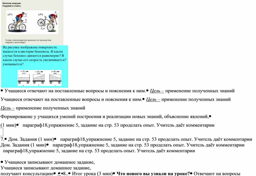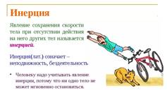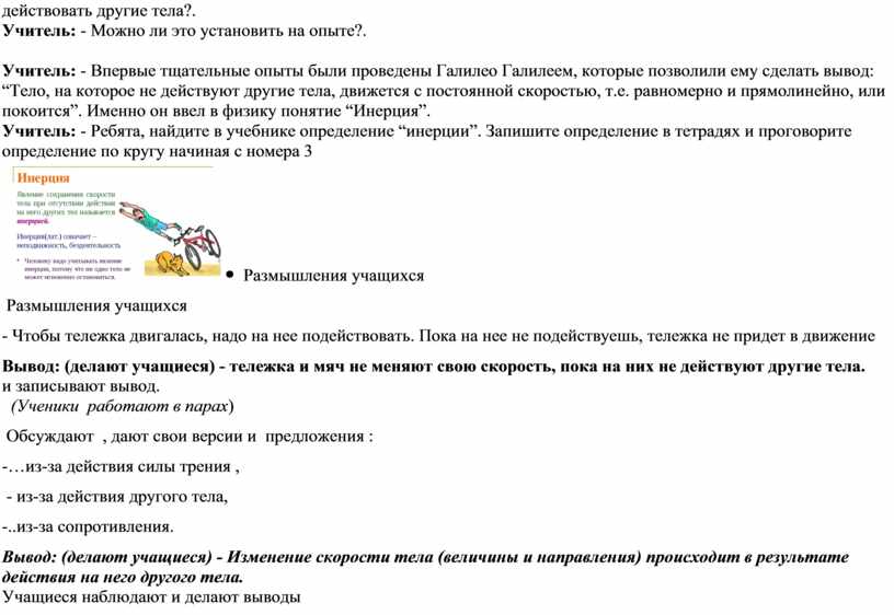 Учитель: - Ребята, найдите в учебнике определение “инерции”. Запишите определение в тетрадях и проговорите определение по кругу начиная с номера 3
