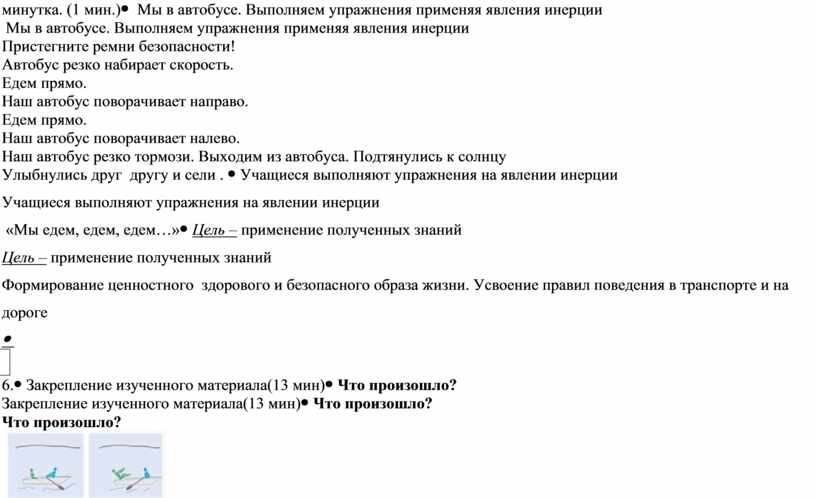 Учащиеся выполняют упражнения на явлении инерции «Мы едем, едем, едем…» |
