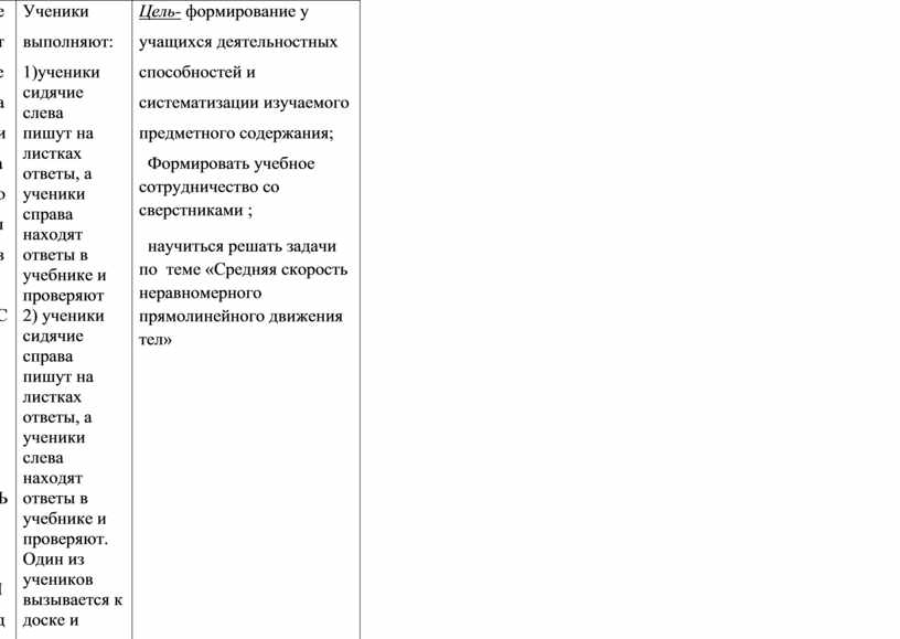 Цель- формирование у учащихся деятельностных способностей и систематизации изучаемого предметного содержания; Формировать учебное сотрудничество со сверстниками ; научиться решать задачи по теме «Средняя скорость неравномерного прямолинейного движения тел»