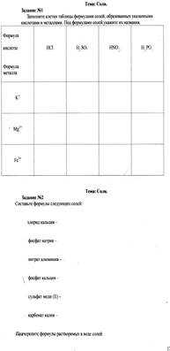 веществ в четвертой группе (см. задание) и дают определение солям, записывают в тетрадь