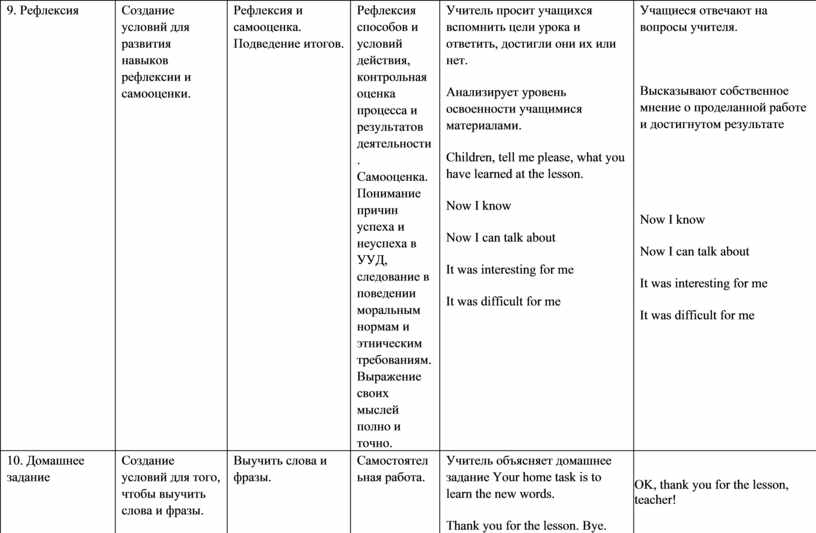 9. рефлексии учебной деятельности |