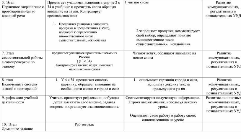 Этапы урока