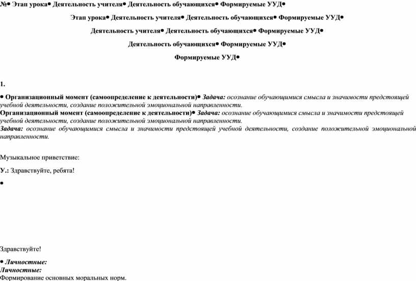 Организационный момент (самоопределение к деятельности) |