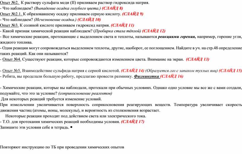 - Т.О. для протекания химических реакций необходимы условия. (СЛАЙД 17)