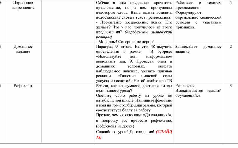 Сейчас я вам предлагаю прочитать предложение, но в нем пропущены некоторые слова. Ваша задача вставить недостающие слова в текст предложения. - Прочитайте предложение вслух. Кто желает? Что у нас получилось из этого предложения? (определение химической реакции) - Молодцы! Совершенно верно! |