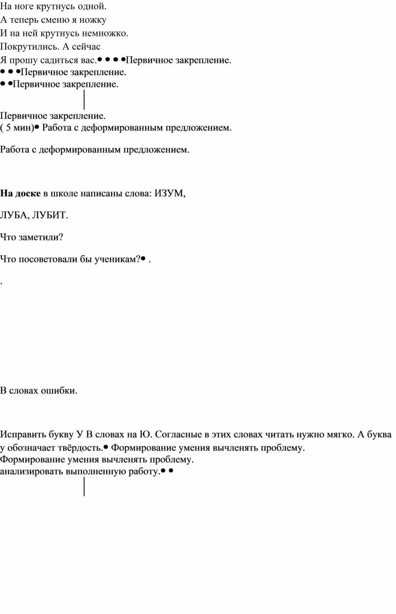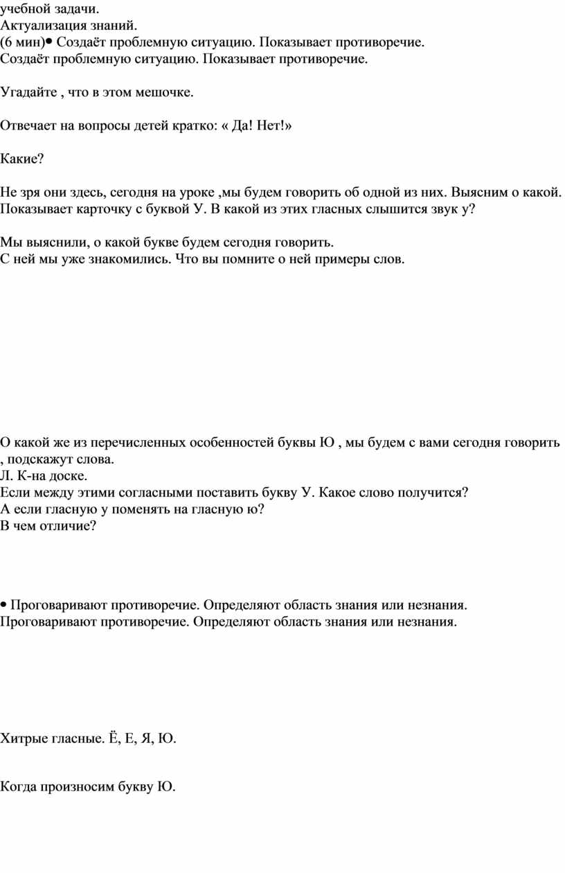 Цели: создать условия для знакомства с функцией буквы «ю» обозначать один звук [у] в определенных позициях: после согласных в слове,; упражнять в чтении слов с буквой «ю»; закреплять знание условного обозначения твердого и мягкого согласных звуков; учить акцентированному произнесению согласных звуков на основе одноуровневых моделей слов; формировать умение читать предложения как относительно законченные по смыслу структурные единицы; развивать фонематический слух и культуру звукопроизношения; воспитывать уважение друг к другу.