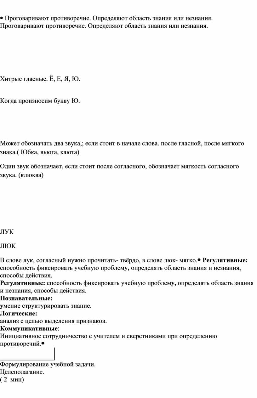 Регулятивные: способность фиксировать учебную проблему, определять область знания и незнания, способы действия. Познавательные: умение структурировать знание. Логические: анализ с целью выделения признаков. Коммуникативные: Инициативное сотрудничество с учителем и сверстниками при определению противоречий. |
