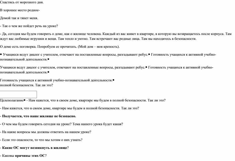 - Нам кажется, что в своем доме, квартире мы будем в полной безопасности. Так ли это? - Получается, что наше жилище не безопасно. - О чем мы будем говорить сегодня на уроке? Тема нашего урока будет какая? - На какие вопросы мы должны ответить на нашем уроке? - Если это опасности, то что мы хотим о них узнать? - Какие ОС могут возникнуть в жилище? - Каковы причины этих ОС? - Как с ними можно справиться? (С некоторыми из них?) - Записываем число и тему урока в тетрадь. А также записываем цели урока.