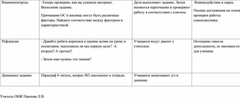 -Теперь проверим, как вы усвоили материал. Выполним задание. Причинами ОС в жилище могут быть различные факторы. Найдите соответствие между фактором и характеристикой.