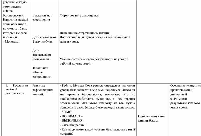 Осознание учащимися практической и личностной значимости результатов каждого этапа урока.