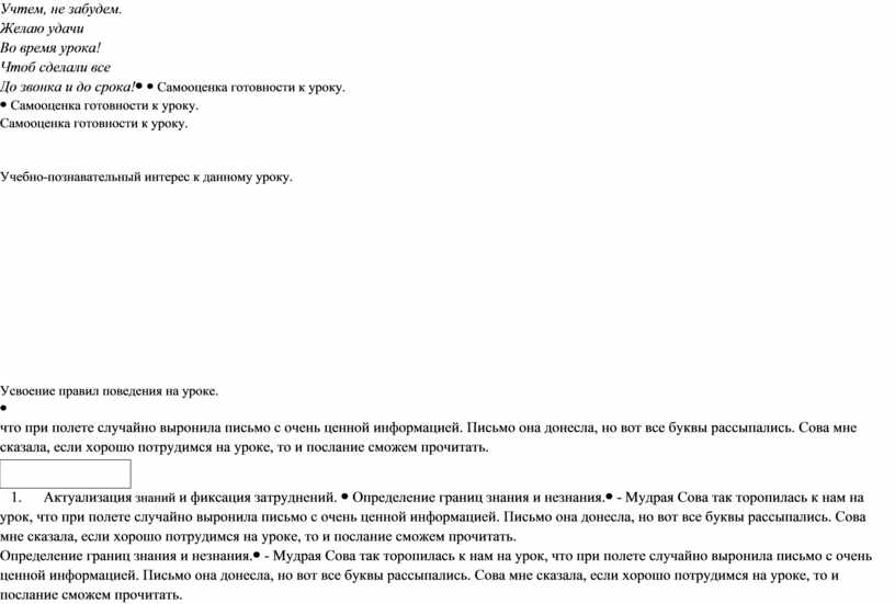 Самооценка готовности к уроку.