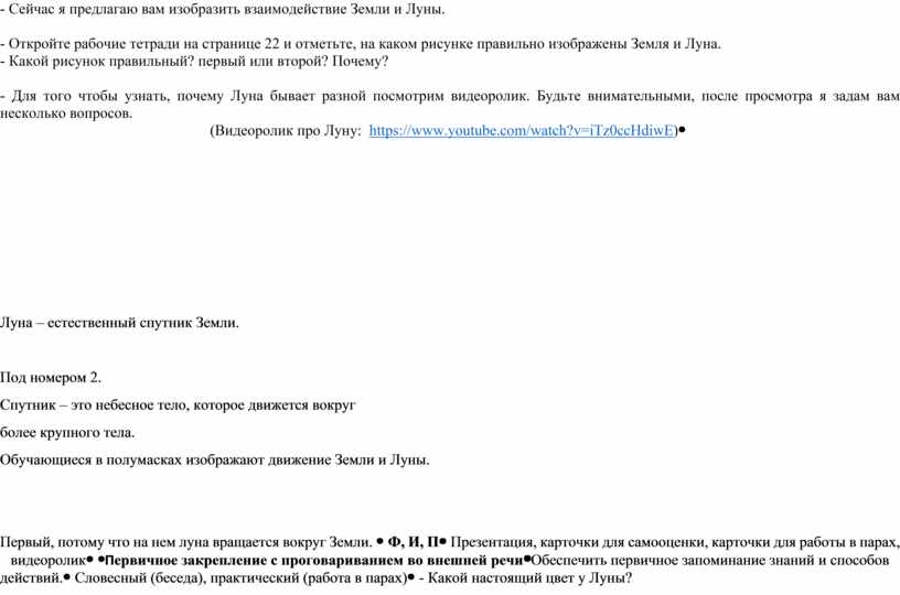 - Для того чтобы узнать, почему Луна бывает разной посмотрим видеоролик. Будьте внимательными, после просмотра я задам вам несколько вопросов. (Видеоролик про Луну: https://www.youtube.com/watch?v=iTz0ccHdiwE) |