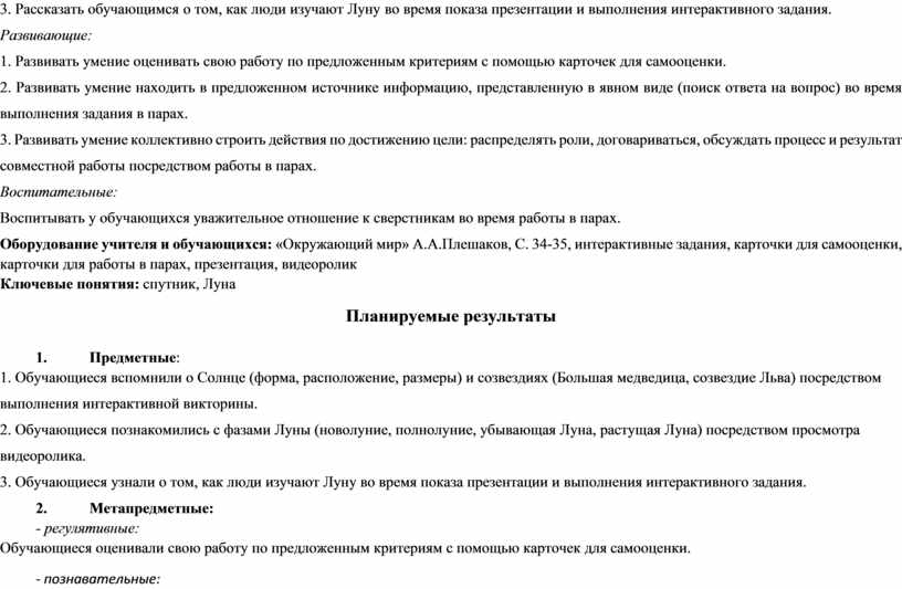 3. Обучающиеся узнали о том, как люди изучают Луну во время показа презентации и выполнения интерактивного задания.