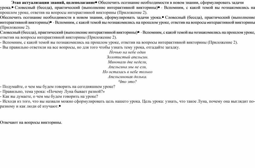 1. Актуализировать знания обучающихся о Солнце (форма, расположение, размеры) и созвездиях (Большая медведица, созвездие Льва) посредством выполнения интерактивной викторины.