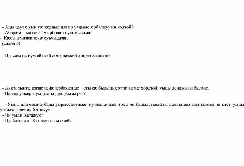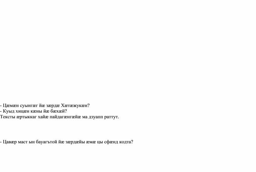 - Цæмæн? Тексты дыккаг хайæ пайдагæнгæйæ дзуапп раттут.