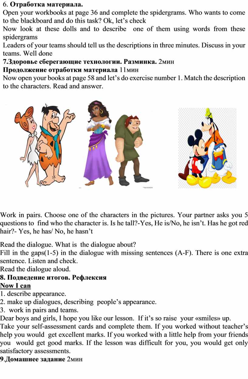 Work in pairs. Choose one of the characters in the pictures. Your partner asks you 5 questions to find who the character is. Is he tall?-Yes, He is/No, he isn’t. Has he got red hair?- Yes, he has/ No, he hasn’t