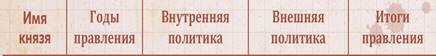 Заполняют графу таблицы «внутренняя политика»