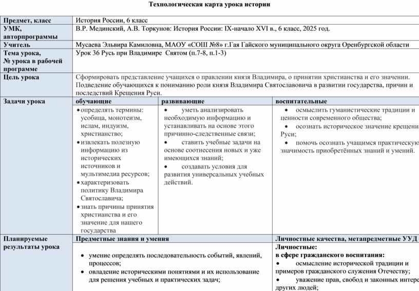 · умение определять последовательность событий, явлений, процессов; · овладение историческими понятиями и их использование для решения учебных и практических задач; · умение устанавливать причинно-следственные, пространственные, временные связи исторических событий, явлений, процессов X-XI вв, их взаимосвязь с важнейшими событиями ХХ ‒ начала XXI в.; · умение определять и аргументировать собственную или предложенную точку зрения с опорой на фактический материал, в том числе используя источники разных типов; · умение анализировать текстовые, визуальные источники исторической информации, представлять историческую информацию в виде таблиц, схем, диаграмм;