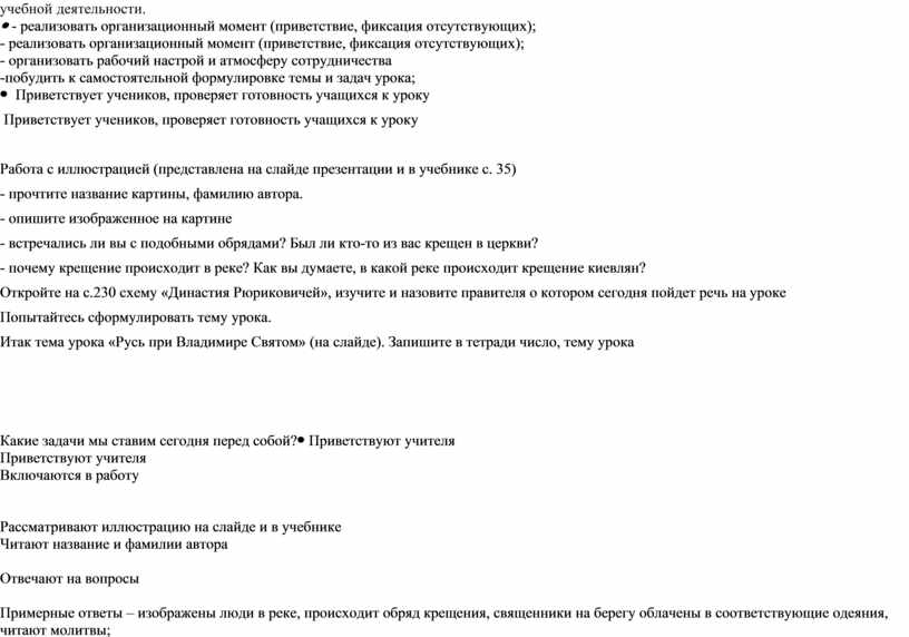 Сформировать представление учащихся о правлении князя Владимира, о принятии христианства и его значении. Подведение обучающихся к пониманию роли князя Владимира Святославовича в развитии государства, причин и последствий Крещения Руси. |