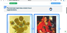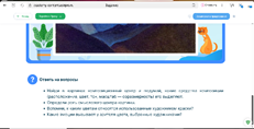 Предлагается рассмотреть картины известных художников и ответить на вопросы о средствах композиции.