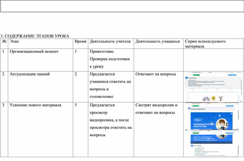 3. СОДЕРЖАНИЕ ЭТАПОВ УРОКА