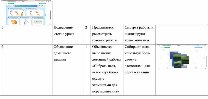 Объясняется выполнение домашней работы «Собрать пазл, используя блок-схему с элементами для перетаскивания» |