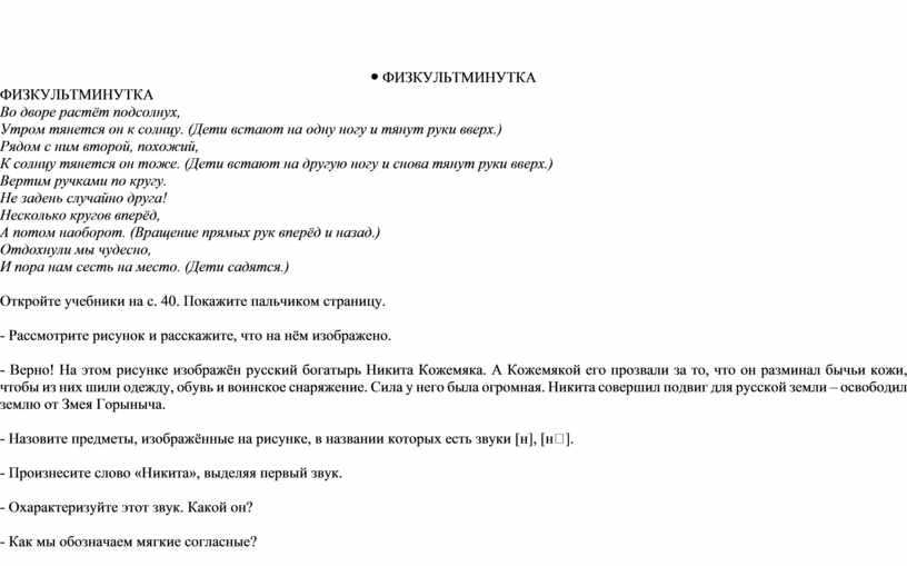 ФИЗКУЛЬТМИНУТКА Во дворе растёт подсолнух, Утром тянется он к солнцу. (Дети встают на одну ногу и тянут руки вверх.) Рядом с ним второй, похожий, К солнцу тянется он тоже. (Дети встают на другую ногу и снова тянут руки вверх.) Вертим ручками по кругу. Не задень случайно друга! Несколько кругов вперёд, А потом наоборот. (Вращение прямых рук вперёд и назад.) Отдохнули мы чудесно, И пора нам сесть на место. (Дети садятся.)