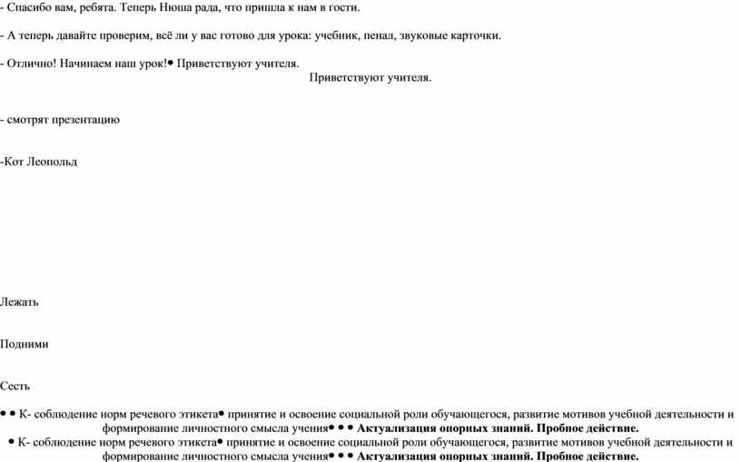 Начинается урок, Он пойдет ребятам впрок. Постарайтесь все понять, Хорошо запоминать. - Сегодня к нам на урок пришел сказочный персонаж. Кто же это? -Он хочет сегодня вместе с вами узнать, что - то новое, поэтому просит помочь ему. -Поможем? -Но для начала Кот Леопольд хочет повторить с вами правила поведения на уроке. Я буду называть вам начало правила, а вы должны продолжить его.