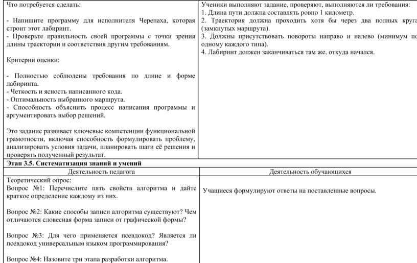 Этап 3.5. Систематизация знаний и умений |